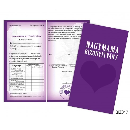 Nagymama bizonyítvány Bizonyítvány